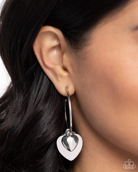 Featuring various textures, a trio of silver hearts in varying sizes cascades from a thin silver hoop for a romantic statement. Earring attaches to a standard post fitting. Hoop measures approximately 1 1/2" in diameter.