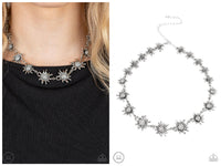 Featuring studded silver or white rhinestone encrusted centers, lifelike silver daisies gradually increase in size as they link around the necklace for a fashionably floral display. Features an adjustable clasp closure.