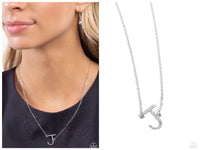 Embossed with dainty iridescent rhinestones, a silver letter "J" hovers below the collar from a dainty silver chain, for a sentimentally simple design. Features an adjustable clasp closure. Due to its prismatic palette, color may vary.