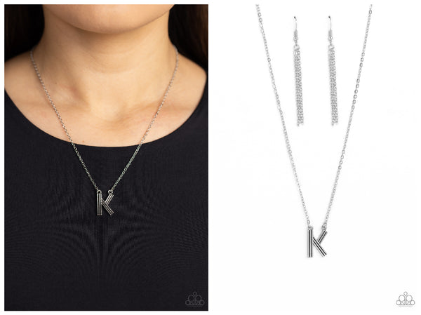 Etched in linear texture, a silver letter "K" hovers below the collar from a dainty silver chain, for a sentimentally simple design. Features an adjustable clasp closure.