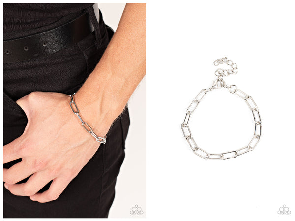 A shiny collection of oblong oval silver links interlock around the wrist for a casual urban look. Features an adjustable clasp closure.