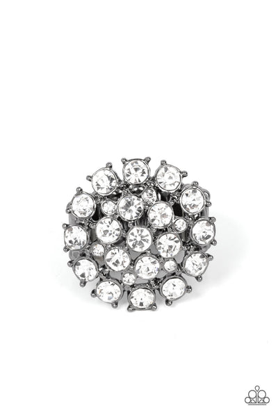 Featuring pronged gunmetal fittings, an explosion of glassy white rhinestones sparkles atop the finger for a statement-making fashion. Features a stretchy band for a flexible fit.