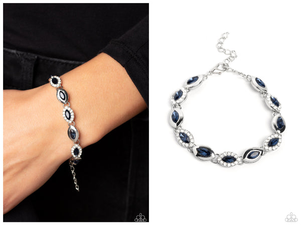 Pressed into high-sheen silver marquise-cut frames, blue marquise-cut rhinestones glimmer around the wrist. Encrusted on every other silver frame, dainty white rhinestones create additional sparkle and glow to the refined display. Features an adjustable clasp closure.