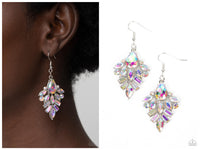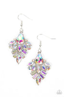A stunning stack of round, emerald, teardrop, and marquise cut iridescent rhinestones lavishly fans out into a stellar lure. Earring attaches to a standard fishhook fitting.